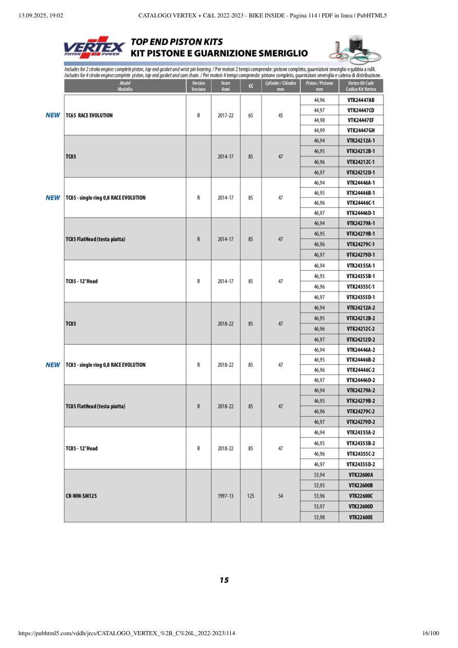 2015 | YZ-WR250 PR | VERTEX | 🔍📘 |