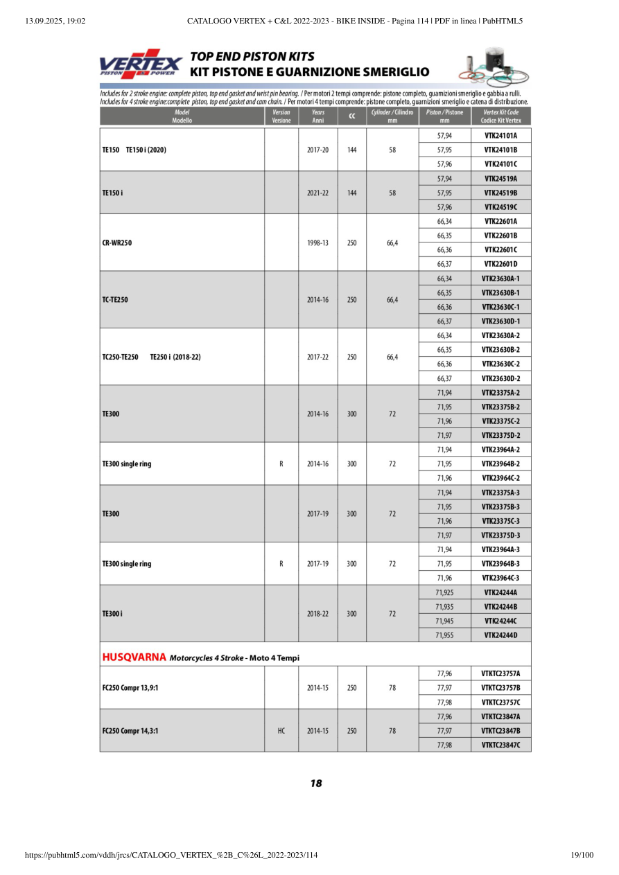 2018 | YZ-WR250 PR | VERTEX | 🔍📘 |