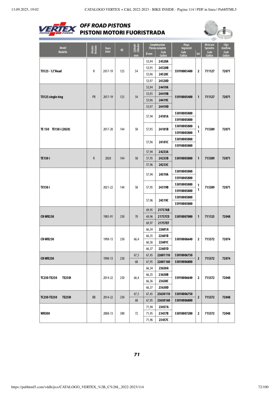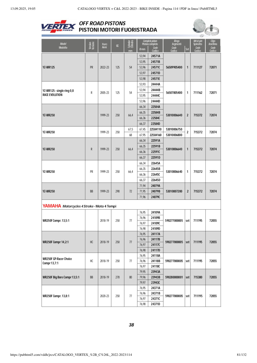 2023 | YZ-WR250 PR | VERTEX | 🔍📘 |