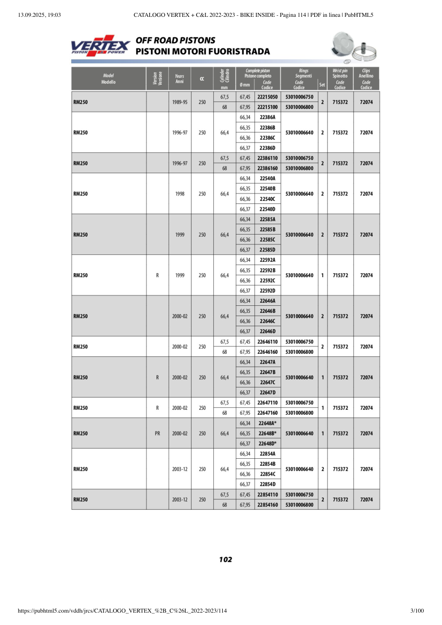 2002 | RM250 R | VERTEX | 🔍📘 |
