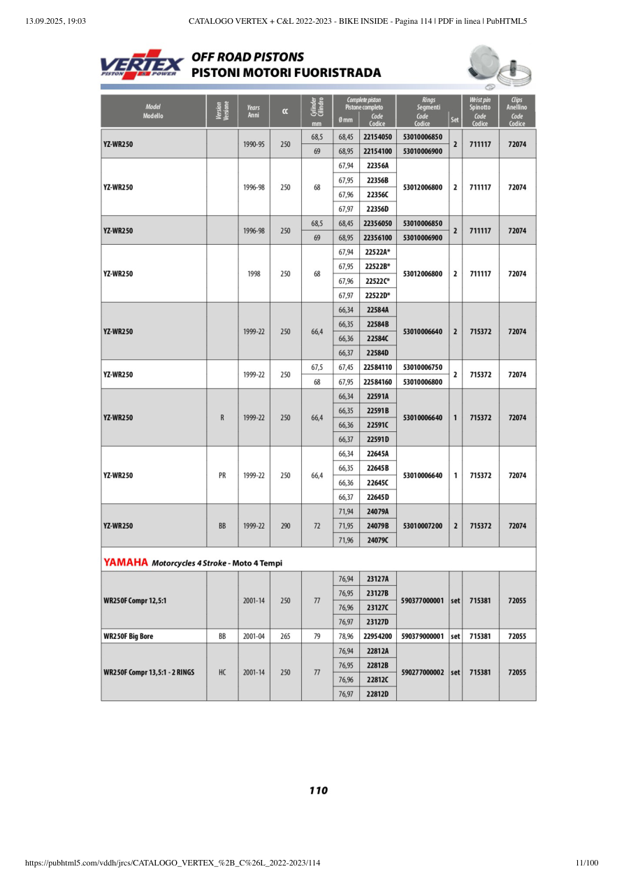 2022 | YZ-WR250 PR | VERTEX | 🔍📘 |