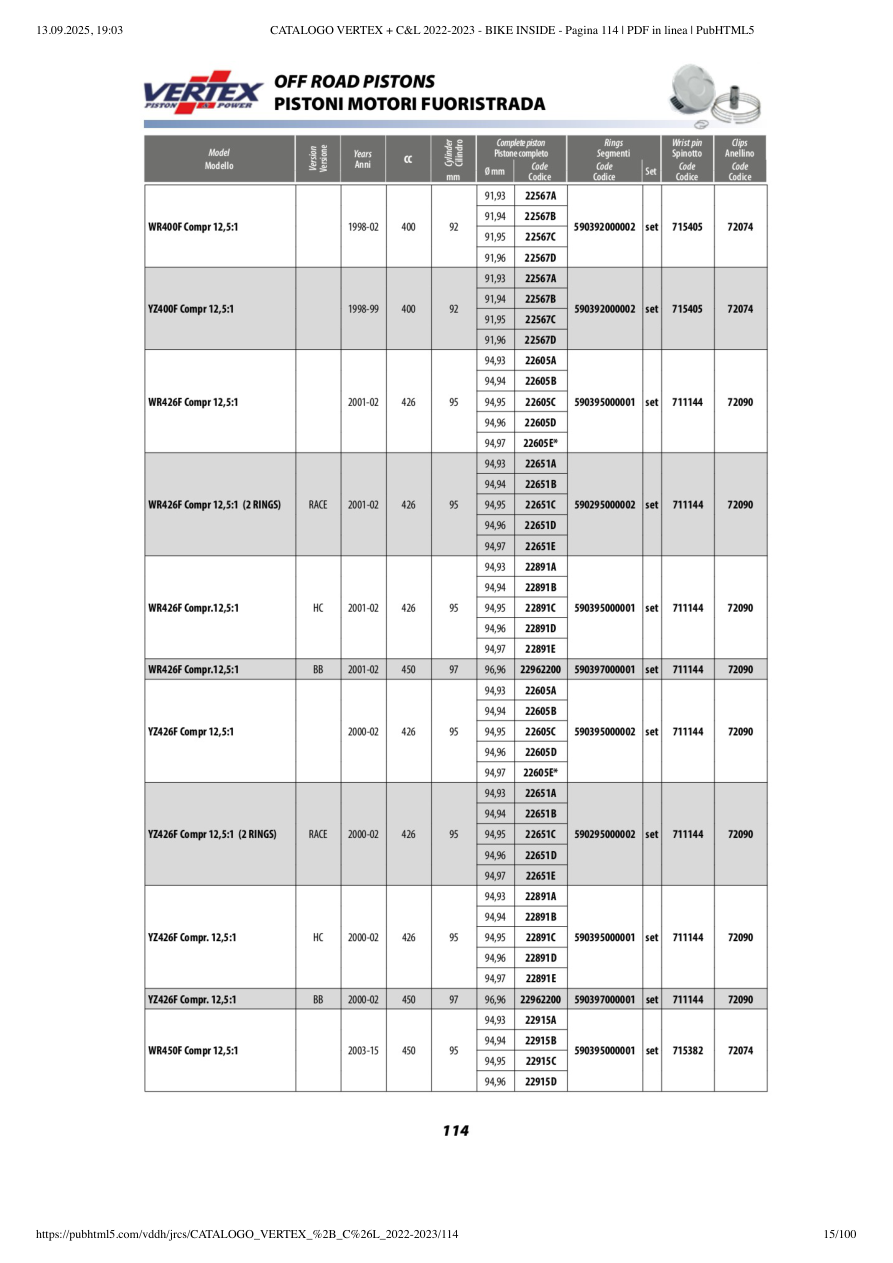 2002 | WR426F Compr 12,5:1 (2 RINGS) RACE | VERTEX | 🔍📘 |