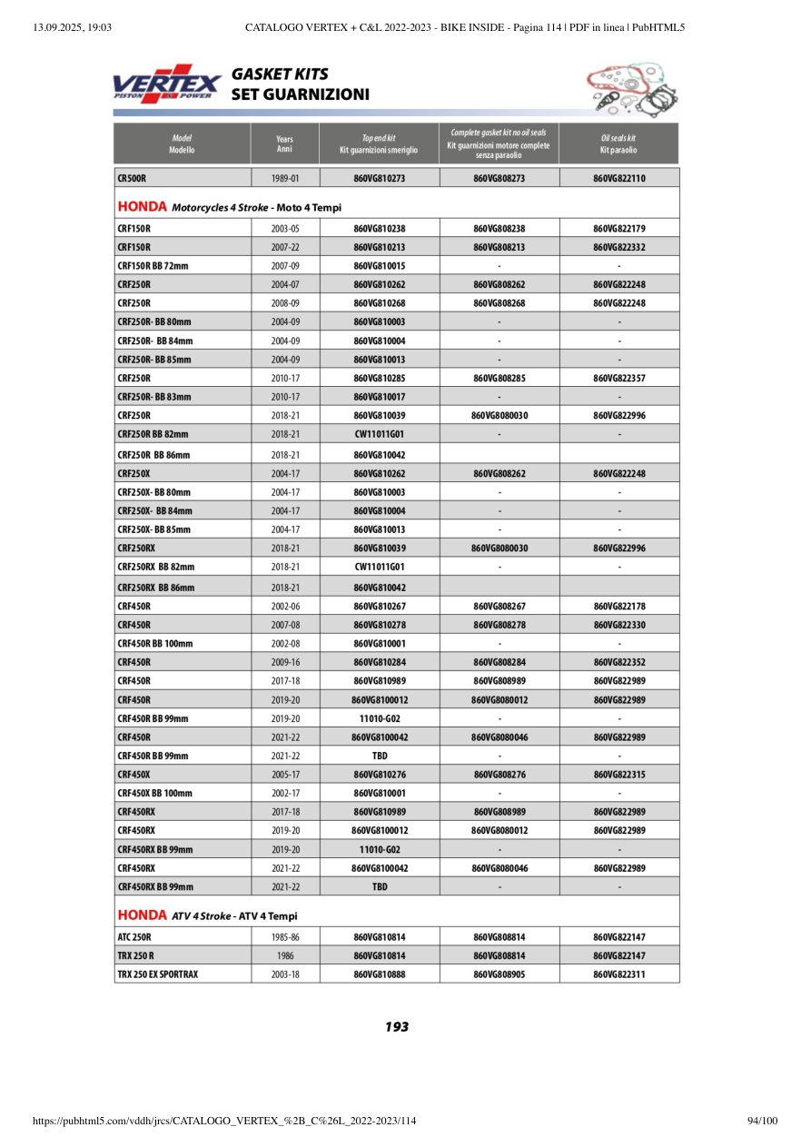 2023 | CRF 150R | VERTEX | 🔍📘 |
