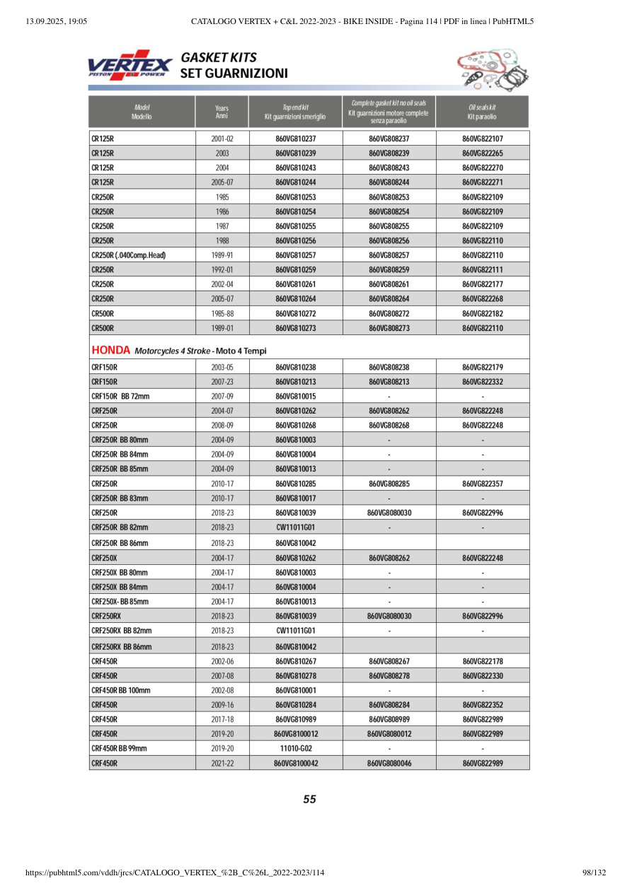 2022 | CRF 450 R | VERTEX | 🔍📘 |