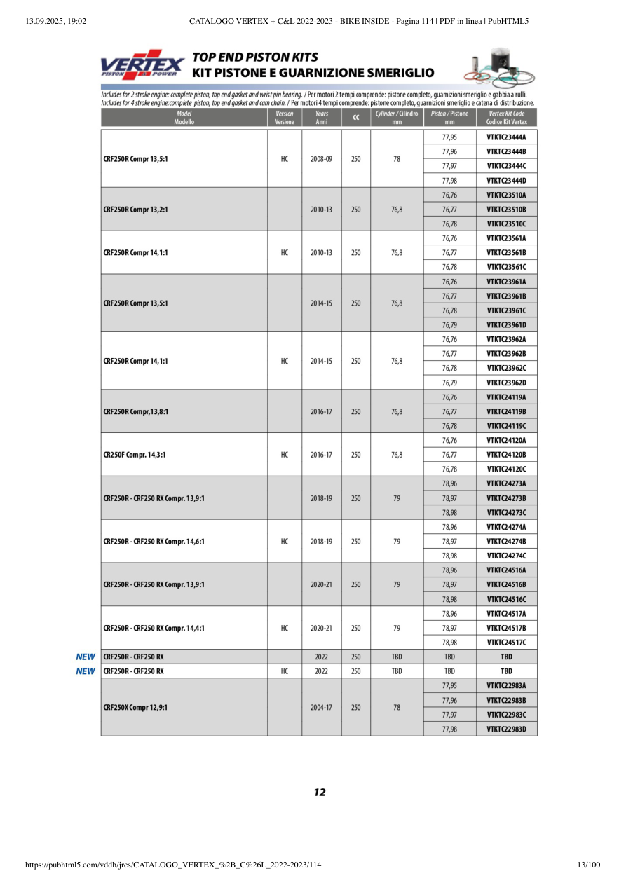2013CRF250R Compr 13,2:1VERTEX🔍📘
