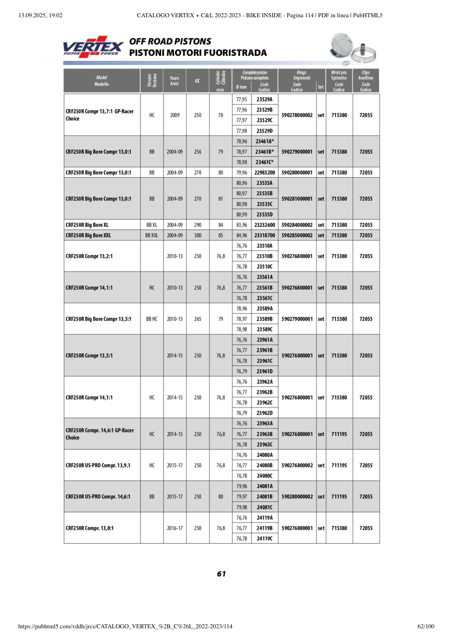 2012CRF25OR Compr 13,2:1VERTEX🔍📘