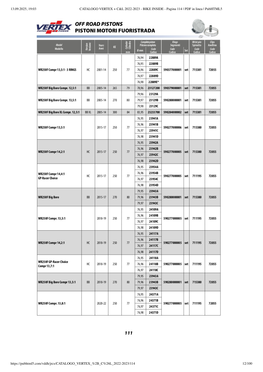 2019 | WR25OF Compr. 13,5:1 | VERTEX | 🔍📘 |