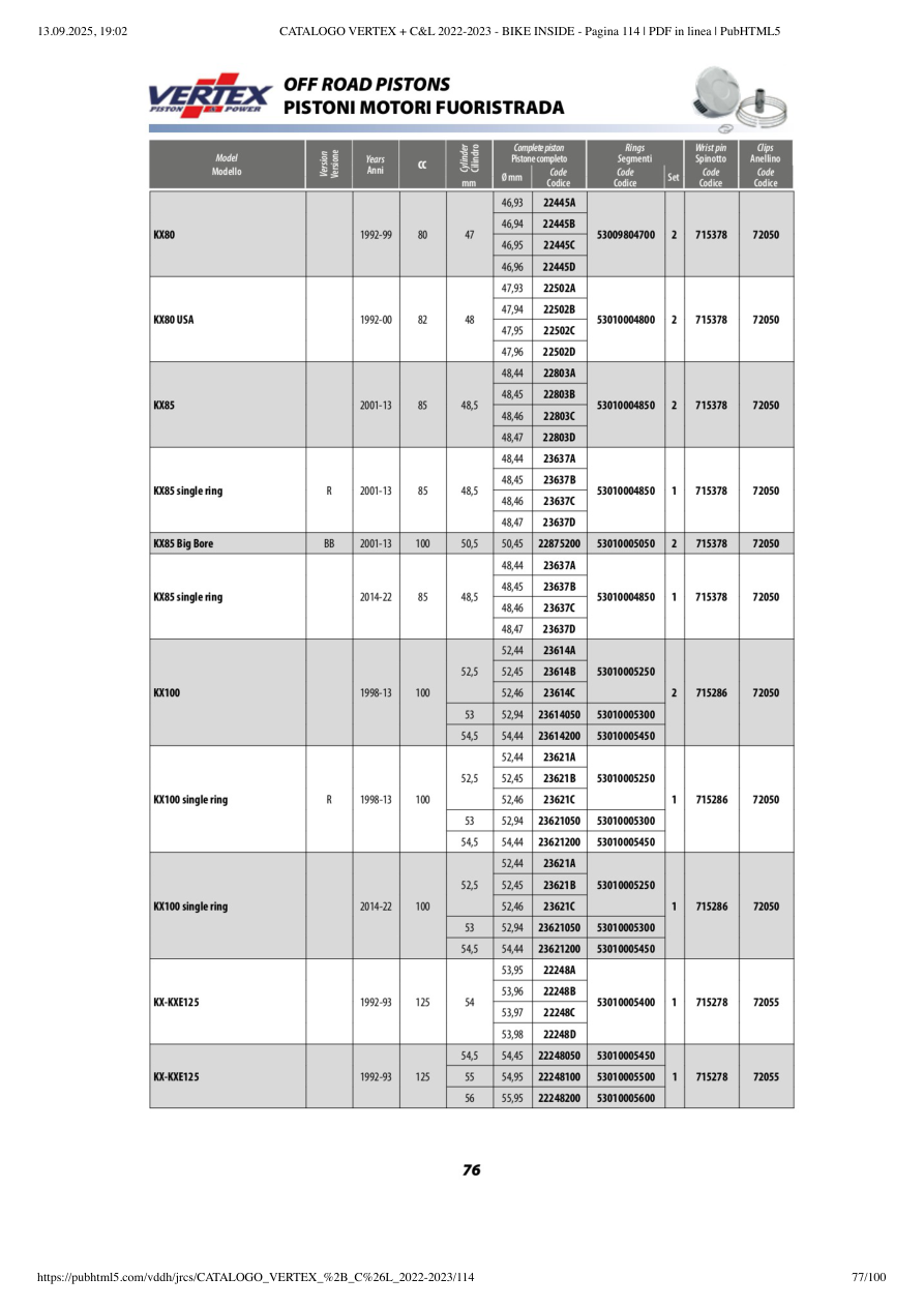 2022 | SX85-EXC85 FlatHead (testa piatta) | VERTEX | 🔍📘 |