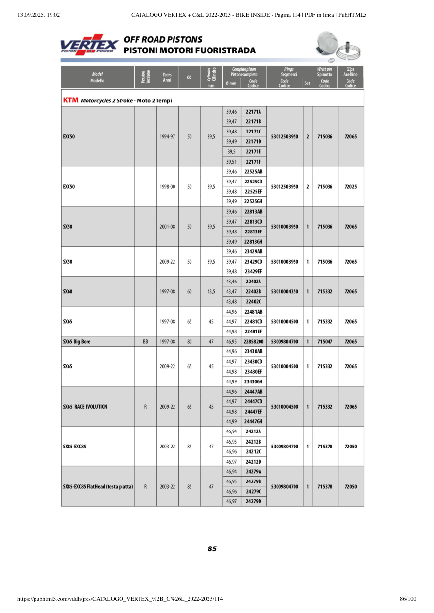 2022 | SX85-EXC85 | VERTEX | 🔍📘 |