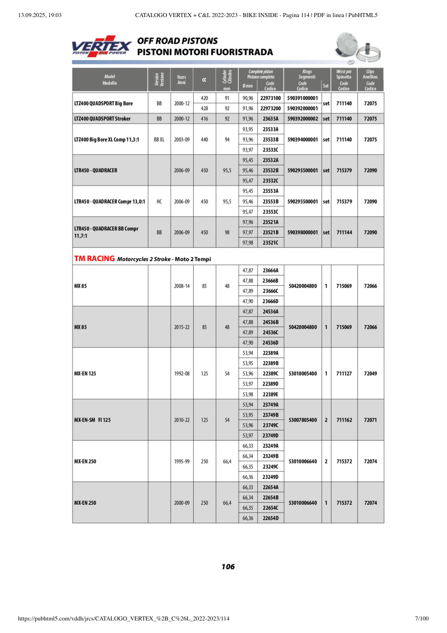 2022 | YFZ450R Compr 13,0:1 HC | VERTEX | 🔍📘 |