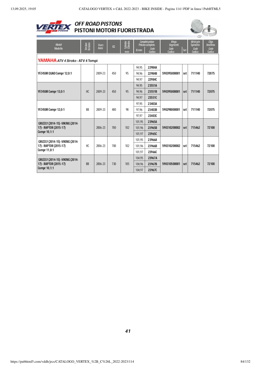 2023 | YFZ450R Compr 13,0:1 HC | VERTEX | 🔍📘 |