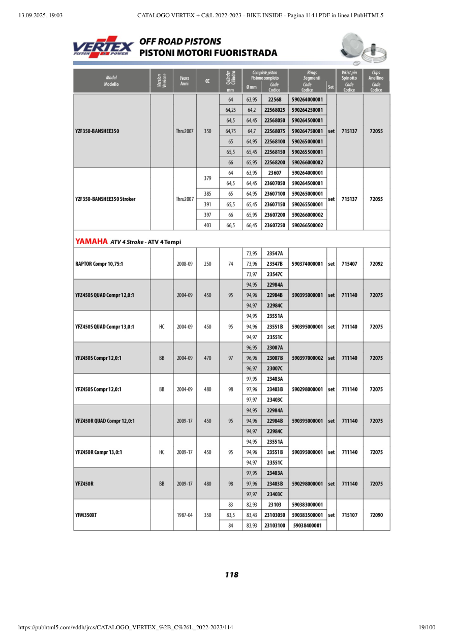 2004 | YFZ4SOS Compr 12,0:1 BB | VERTEX | 🔍📘 |