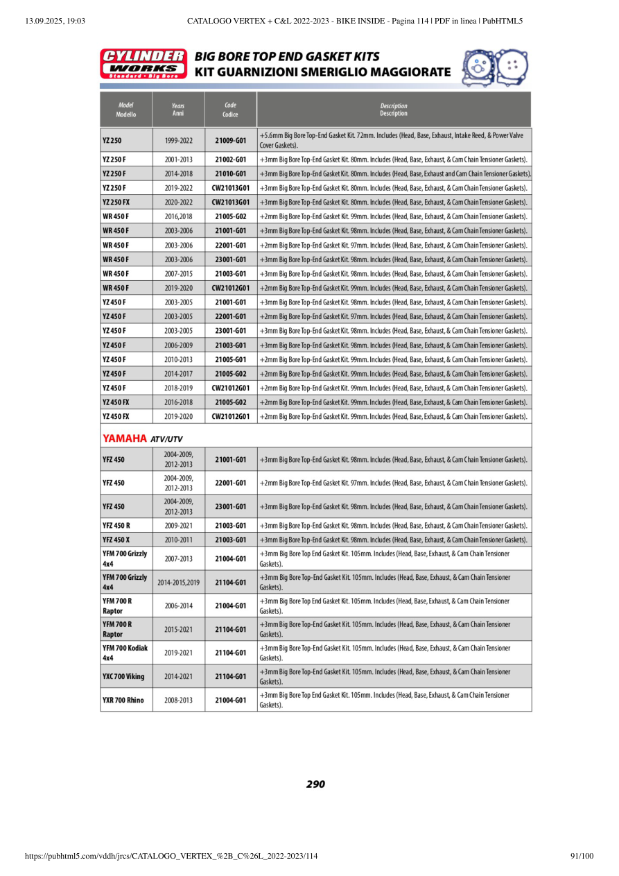 2009 | YEZ 450 | VERTEX | 🔍📘 |