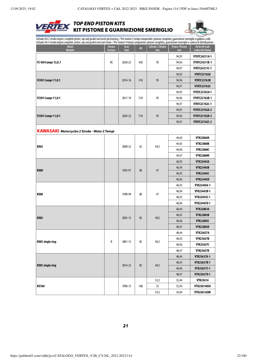 2022 | FE 450 Compr 11,8:1 | VERTEX | 🔍📘 |