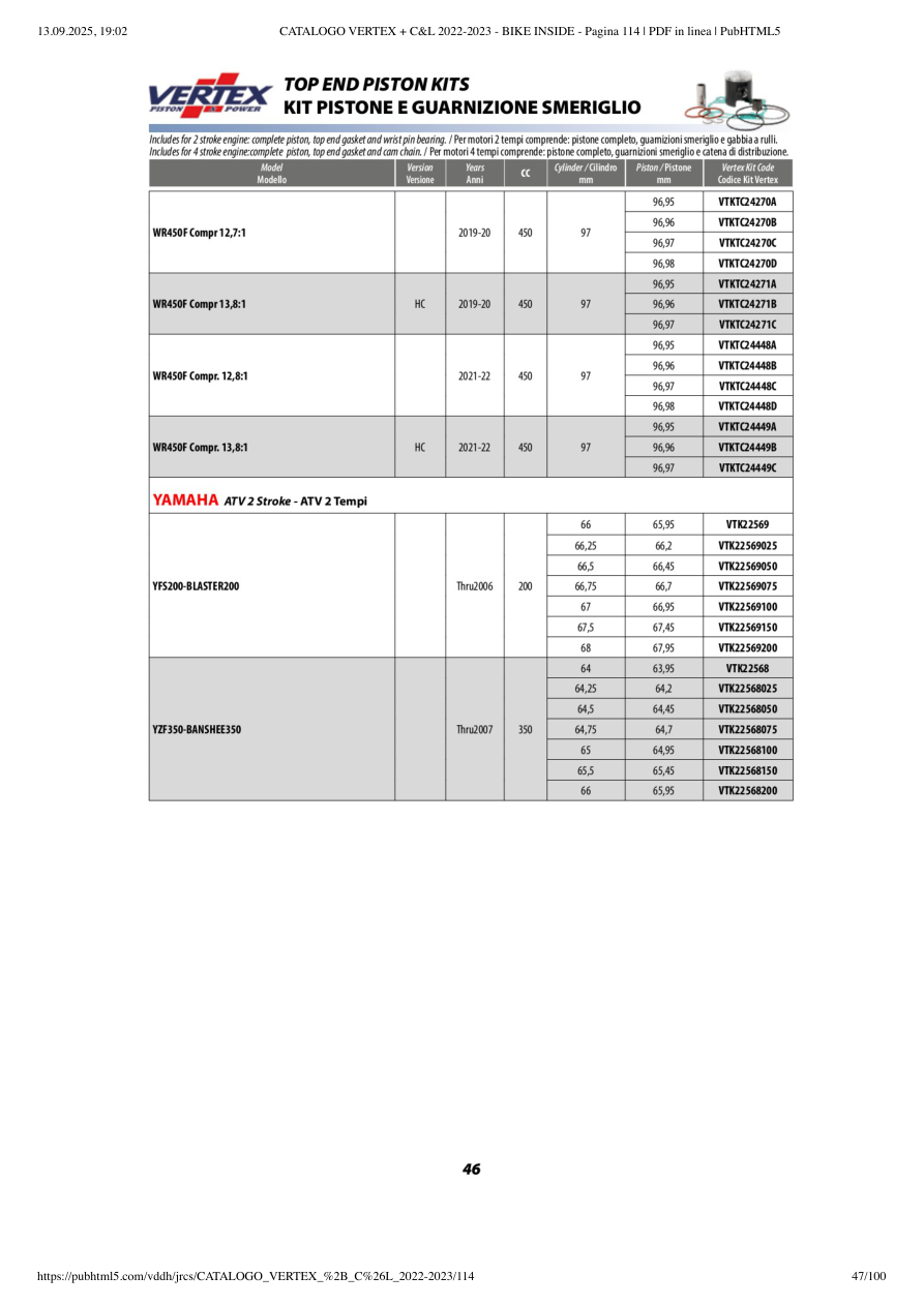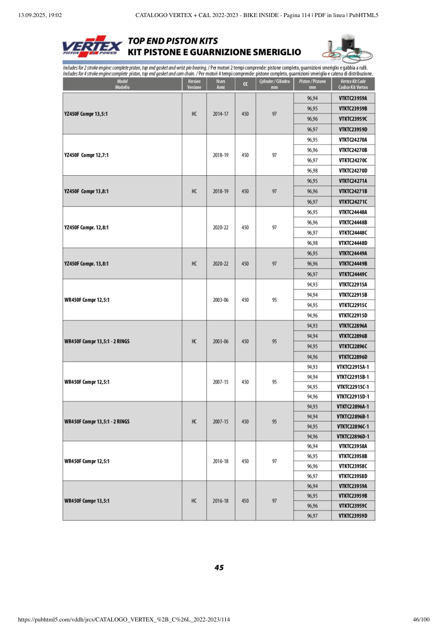 2022 | EXC450F Compr 11,8:1 | VERTEX | 🔍📘 |