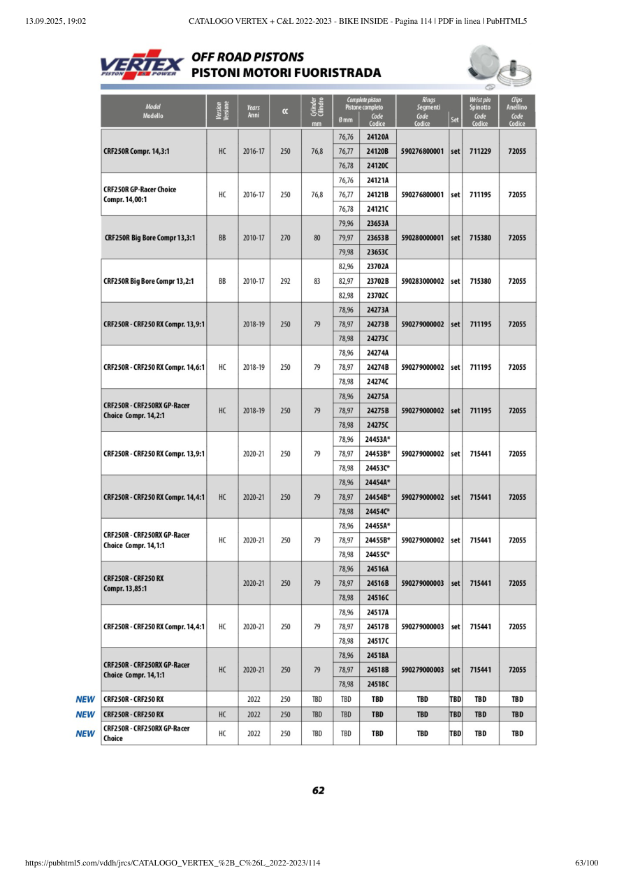 2022 | RMZ450 GP-Racer Choice Compr 13,1:1 | VERTEX | 🔍📘 |