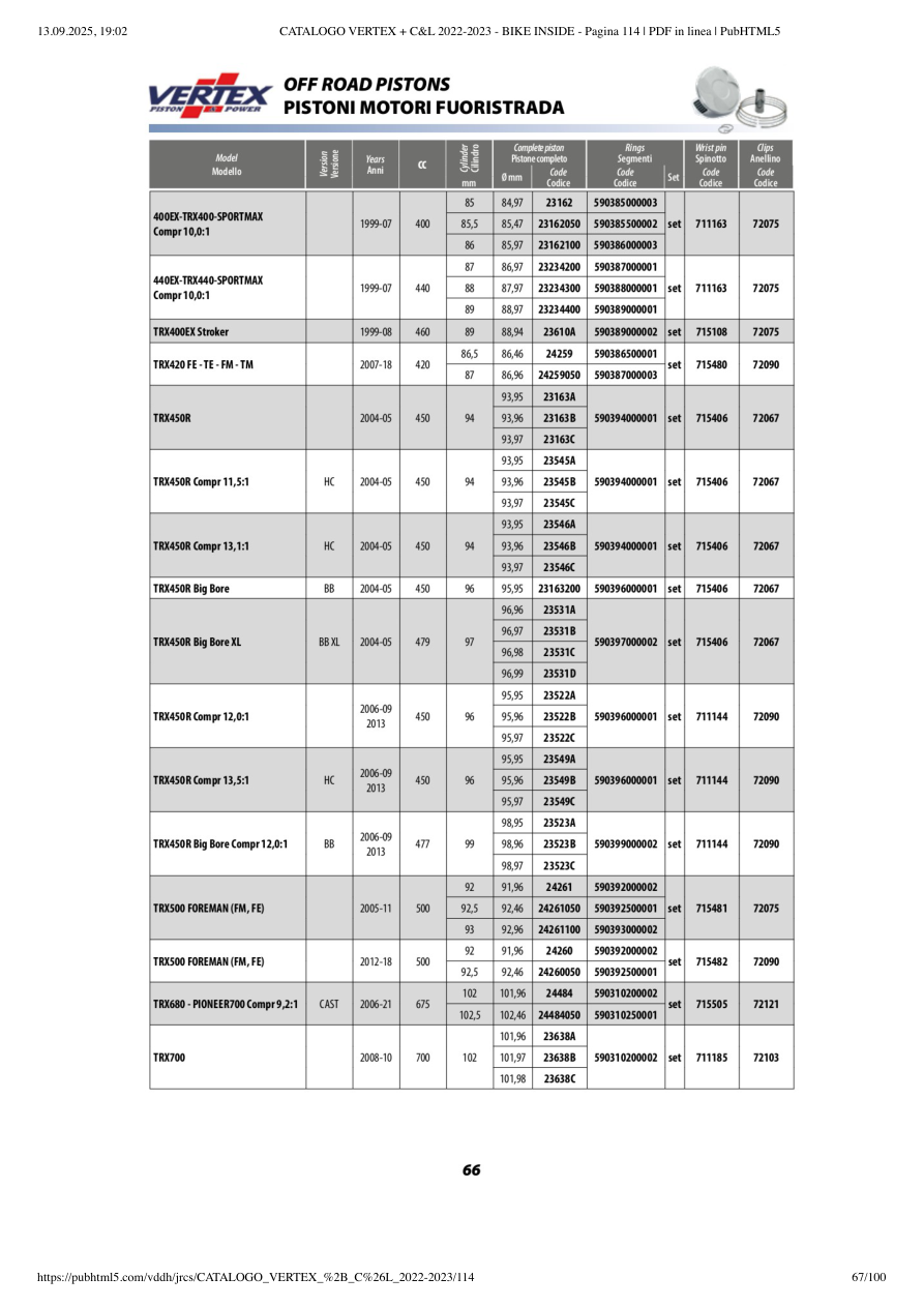 2023 | EXC450F Compr 11,8:1 | VERTEX | 🔍📘 |