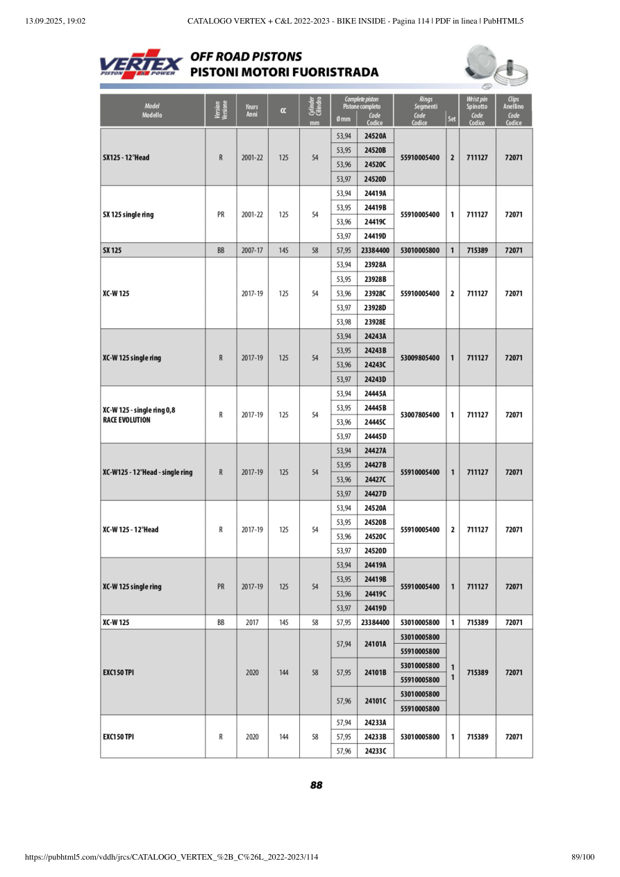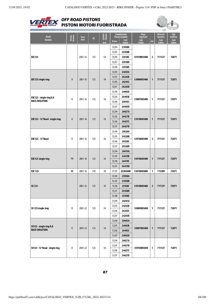 2023 | SX 125 single ring | VERTEX | 🔍📘 |
