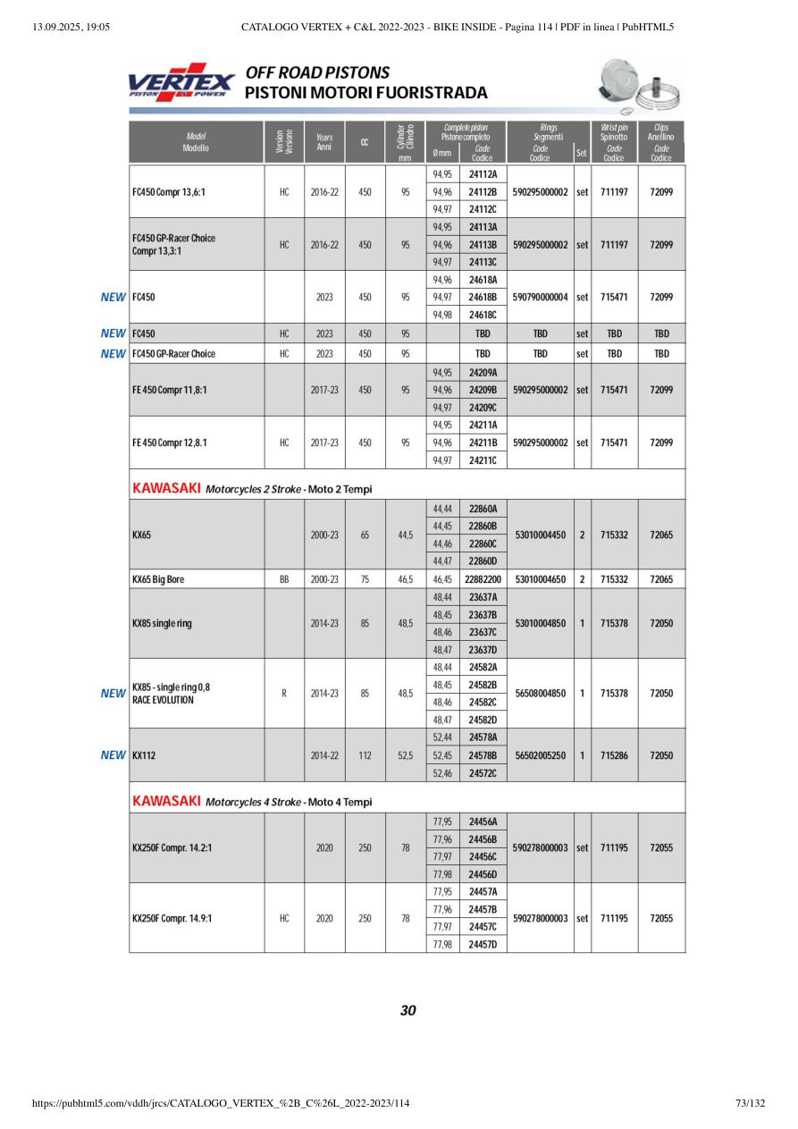 2023 | FE 450 Compr 11,8:1 | VERTEX | 🔍📘 |