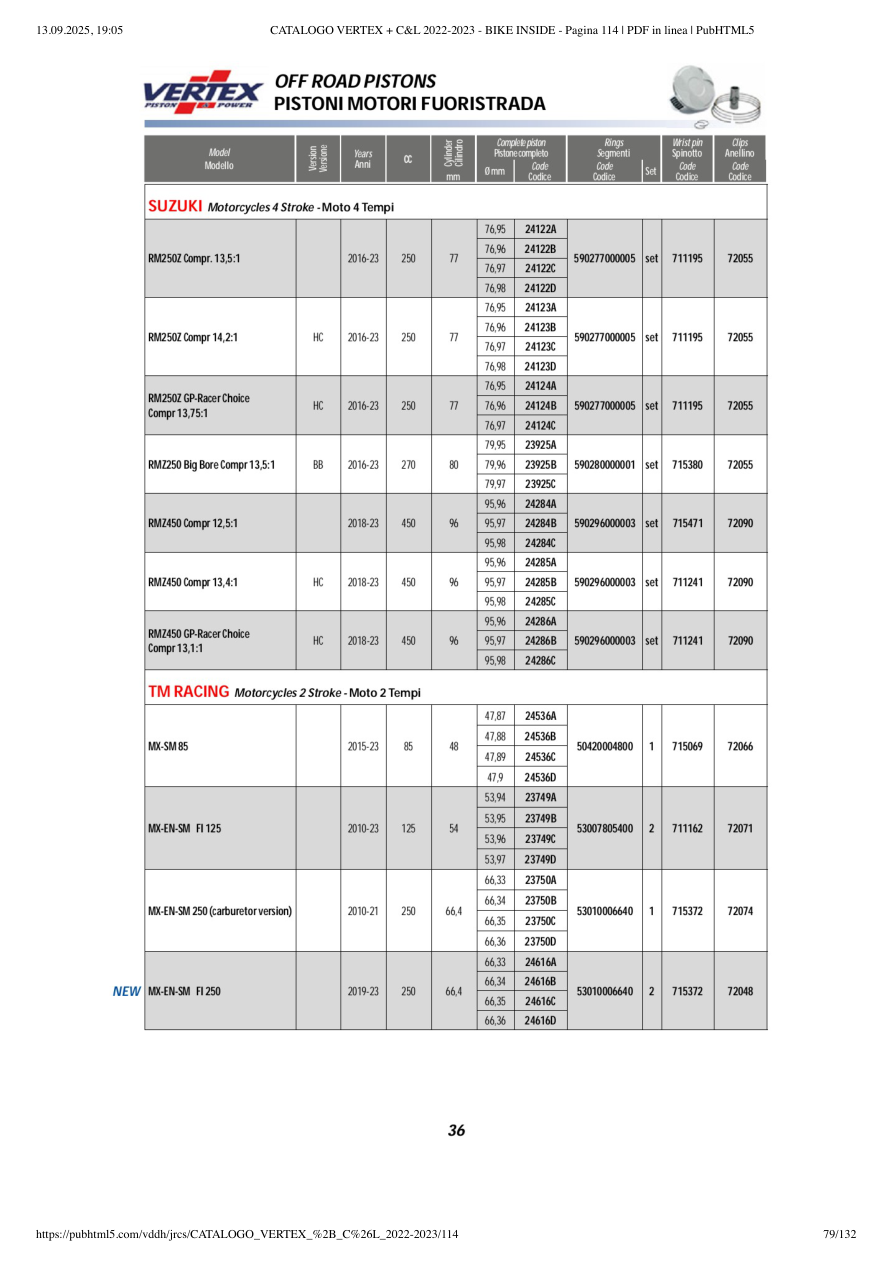 2023 | RMZ450 Compr 12,5:1 | VERTEX | 🔍📘 |