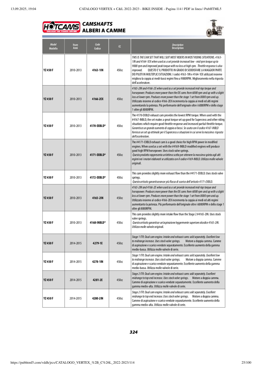 | 2013 | YZ 450 F | VERTEX | Смотреть схему 📘 |