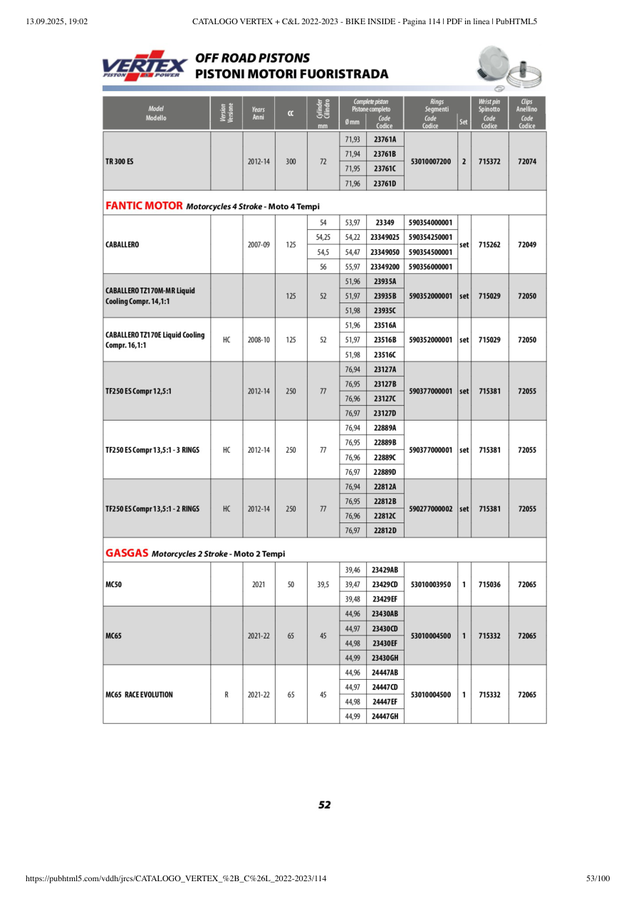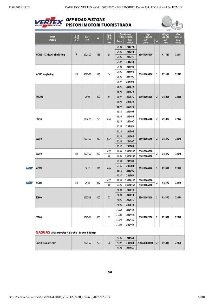 2022 | YZ-WR250 R | VERTEX | 🔍📘 |