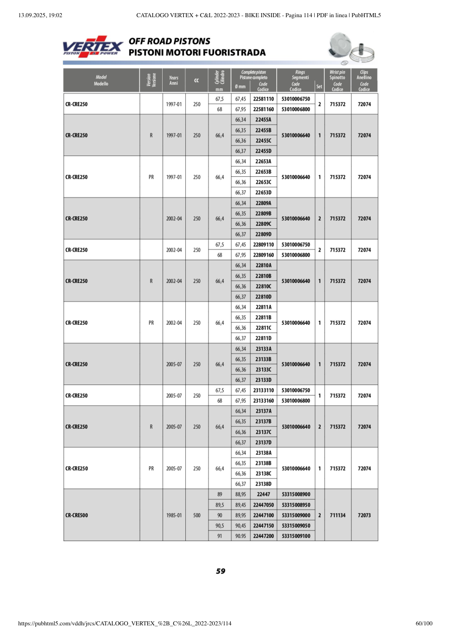1999 | CR-CRE250 R | VERTEX | 🔍📘 |