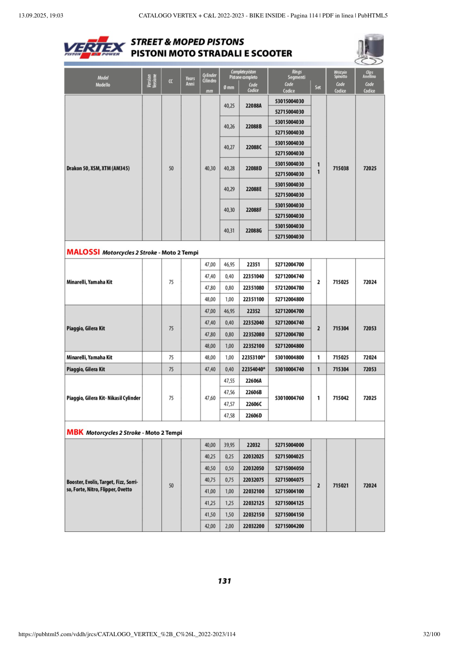 75 | Piaggio, Gilera Kit- Nikasil Cylinder | VERTEX | 🔍📘 |