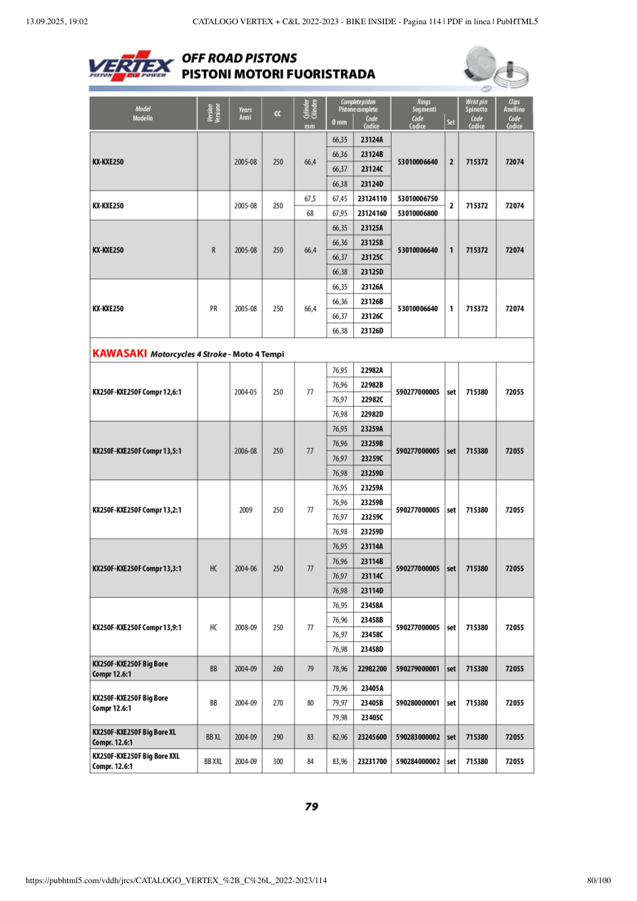 2005 | KX250F-KXE250F Big Bore XXL BB XXL | VERTEX | 🔍📘 |