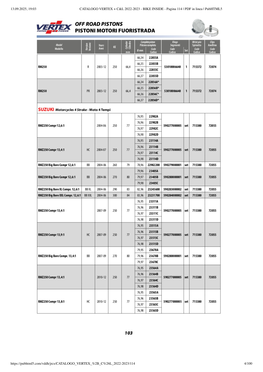 2004 | RMZ250 Big Bore XXL Compr. 12,6:1 BB XXL | VERTEX | 🔍📘 |