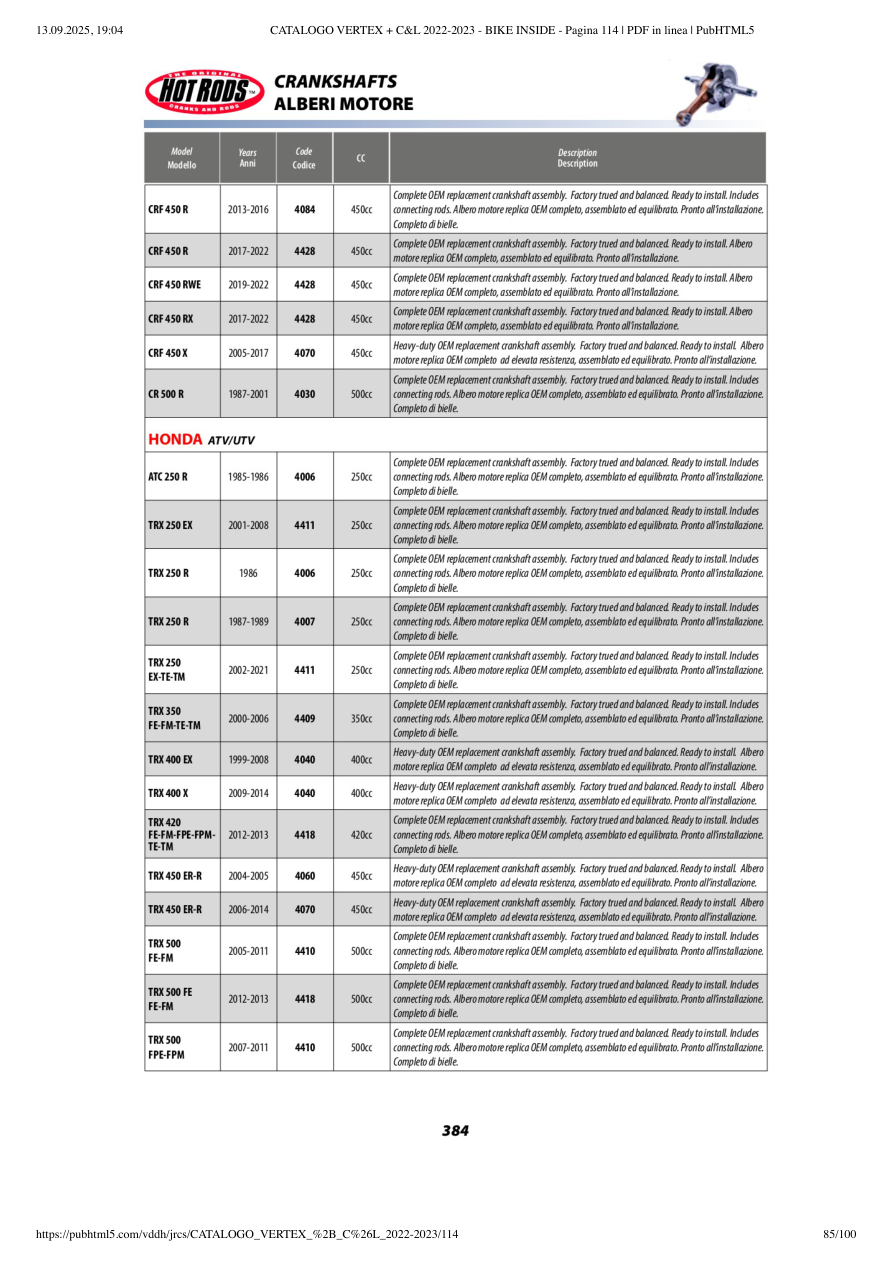 | 2016 | CRF 450 R | VERTEX | 🔍📘 |