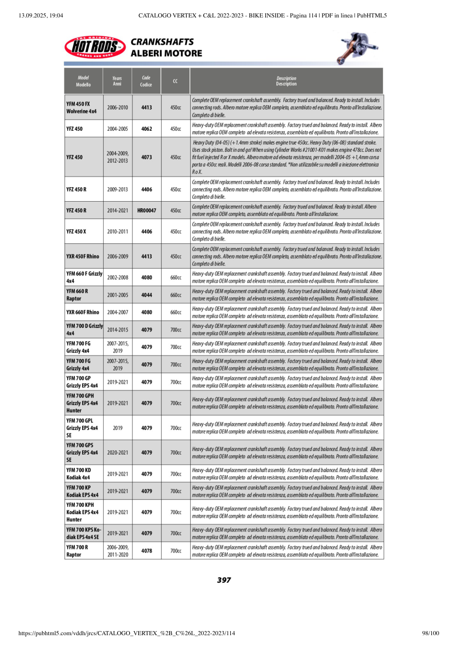 | 2013 | CRF 450 R | VERTEX | 🔍📘 |