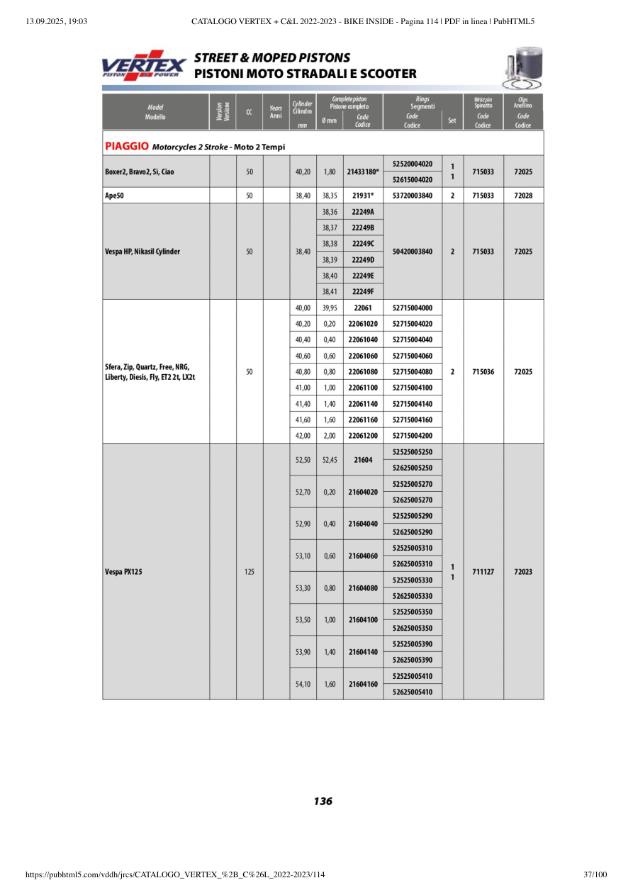 – | Vespa HP, Nikasil Cylinder | VERTEX | 🔍📘 |